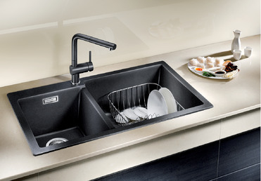 - Easy to clean, flowing transition from the sink's rim to the tap ledge
